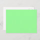 Une carte postale de couleur unie et légère "Vert Menthe" (avec couleur uniquement sur le devant). Le Vert Menthe est un vert pâle ; une teinte claire de vert. Cliquez sur "Personnaliser" pour changer la couleur ou ajouter du texte ou un motif. Code Hexadécimal du Produit : #98ff98