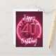 Carte Postale Vibrant Chic Néon Rose 40e Anniversaire
