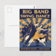 • This vibrant digital illustration captures the classic style of a 1940s big band swing dance, featuring a couple joyfully dancing to live music.