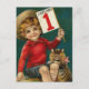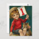 Une carte mignonne pour souhaiter un Nouvel An très heureux et réussi. Un petit garçon et un chat tiennent un drapeau de la date.