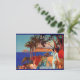 Publicité de voyage française et européenne - Illustration Plage, village, dame, chien, arbres, mer bleue et ciel