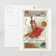 Cette carte postale est une reproduction d'une carte postale vintage d'Halloween qui présente une sorcière volant sur son balai.