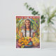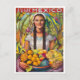 Affiche de voyage illustrée vintage du début des années 1900 d'une Mexicaine avec des plis tenant des paniers de fruits entourés de feuilles de bananes de notre collection de fruits