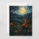 Une carte postale époustouflante inspirée du célèbre tableau Starry Night de Vincent van Gogh, représentant un violon dans un champ de fleurs. Les couleurs de cette oeuvre impressionniste sont le bleu et le jaune. Parfait pour un proche qui aime les beaux arts et les paysages majestueux.