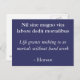 Une carte postale bleue avec une expression latine et la traduction en anglais dessous. La "vie accorde à rien nous des mortels sans dur labeur" par le poète romain, Horace. Fondamentalement (au cas où vous ne pourriez pas conjecture), vous n'obtenez rien si vous ne travaillez pas dur pour le réaliser.