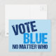 Vote Blue Peu Importe Qui Démocrate carte postale. cartes postales du parti démocratique cool avec une citation politique amusante. Un humour démocrate à l'élection pour voter droit démocrate à l'élection. Envoyer un courrier aux électeurs potentiels.