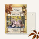 Une carte postale romantique et artistique Save the Date avec votre photo préférée encadrée par un design en or et en bois patiné avec des feuilles d'automne colorées et une lanterne festive et chaude.