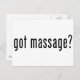 Façonné après cette publicité très populaire, nous avons ce design super mignon "Get Massage?" sur des tonnes de produits pour que vous puissiez l'utiliser sur vos cartes de visite de massage, de cartes de remerciement, ou de donner comme cadeaux clients. Disponible en noir ou blanc cassé.