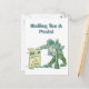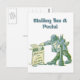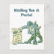 Carte postale amusante montrant un homme ivre qui pense vraiment envoyer une correspondance, mais à la place, il met la lettre à la poubelle ! Sa boisson alcoolisée est dans la poche de son manteau, et il se soutient contre un poteau de rue.