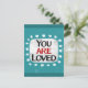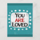 "Vous êtes aimé" est une citation inspirante ou motivante mignonne avec une forme accentuée blanche entourée de points fantaisistes texturés blancs.