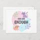 Vous êtes assez Cat Affirmation Carte Postale - Positive Self-Love Motivational Design Ajoutez un peu de positivité à votre vie avec cette carte postale d'affirmation "Vous êtes assez"! Doté d'un design de chat mignon et capricieux et d'accents pastel doux, cette carte postale est un rappel parfait pour embrasser l'amour-propre et rester confiant. Cette carte postale motivante vous rappelle gentiment votre valeur. Un cadeau parfait pour ceux qui ont besoin d'un coup de pouce stimulant ou pour ceux qui aiment les chats et les affirmations positives.
