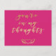 NewParkLane - Élégante carte de condoléances pour exprimer vos sympathies, ou pour souhaiter un prompt rétablissement à quelqu'un qui est malade, avec la citation 'Vous êtes dans mes pensées' en or, typographie script brush, avec un cœur ailé doré, sur fond rose framboise.