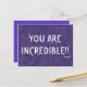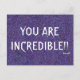 C'est une carte postale violette abstraite cool qui dit "VOUS ÊTES INCROYABLE ! !" en gros caractères blancs à côté d'un visage souriant amusant. Super d'en envoyer un à toutes les personnes incroyables de votre vie!