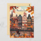 Cette carte postale de voyage présente une illustration sereine et chaleureuse représentant l'horizon d'Amsterdam. Il s'agit d'une grande carte postale romantique pour les voyageurs qui ont l'intention de visiter Amsterdam ou pour ceux qui ont voyagé Amsterdam et envoyer une carte postale à leur famille ou à leurs amis.
