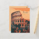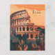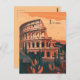 Cette carte postale de voyage présente une illustration sereine et chaleureuse représentant l'horizon de Rome avec vue sur le Colisée depuis le parc de la ville. C'est une carte postale idéale pour les voyageurs qui ont l'intention de visiter Rome ou pour ceux qui ont voyagé à Rome et qui envoient une carte postale à leur famille ou à leurs amis.