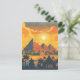 Cette carte postale de voyage présente une illustration sereine et chaleureuse représentant l'horizon du Caire avec des pyramides. C'est une grande carte postale mystique pour les voyageurs qui prévoient de visiter le Caire ou pour ceux qui ont voyagé au Caire et qui envoient une carte postale à leur famille ou à leurs amis.