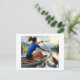 Une femme pagaie vigoureusement un canot à travers un lac calme, entouré de verdure luxuriante et de montagnes sous un ciel spectaculaire. L'eau reflète les couleurs du coucher de soleil, ce qui renforce l'atmosphère sereine mais dynamique de la scène.