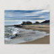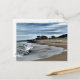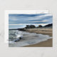 Assis sur la plage le soir, en regardant les nuages de pluie approchant se déplacer à travers le ciel. La marée monte et la petite ville locale de Tywyn se manifeste au loin. Gwynedd Wales UK.