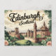 Cette carte postale vintage présente le charme historique d'Édimbourg, en Écosse, avec ses rues médiévales, ses toits de château et ses collines brumeuses. Conçu dans des tons chauds et rétro, il est parfait pour les amoureux du patrimoine écossais, de la beauté de l'ancien monde et des souvenirs de voyage intemporels.