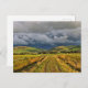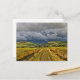 Un soleil couchant et un ciel orageux créant ce paysage rural spectaculaire et souillé.