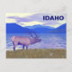 Un wapiti, connu sous le nom de wapiti pour les Amérindiens, sur les rives du lac Pend Oreille, dans le manche de l'Idaho. Le texte "IDAHO" apparaît également.