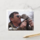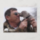 Cliff tient un chiot Weimaraner de six semaines ; il l'embrasse dans le nez.