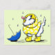 Illustration dessinée à la main d'un Westie vêtu d'un imperméable de canard jaune qui attrape la pluie sur sa langue. Grand art pour les amoureux de les chiens, retour à l'école, les enseignants, les idiots d'avril et les baby showers.