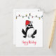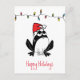 "Fun Holiday post-card whimsical black frog illustration with red Santa a string of holiday lights and customizable "Happy Holidays" texte