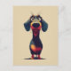 A charming, stylized illustration of a dachshund with exaggerated features and expressive eyes, rendered in a painterly, modern art style. Warm reds, deep blues, and soft textures give the character a playful yet artistic personality. Perfect for children’s art, posters, branding, prints, and contemporary digital illustrations.