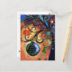 Spread a truly whimsical holiday greeting with this artistic Christmas postcard, perfect for mailing to all the little ones on your list! The front showcases a vibrant, watercolor-style illustration of a happy elf holding a gift and a sweet little blue bird perched on a glistening ornament. The colorful, sparkling, swirly tree background makes this a unique and memorable piece of mail.