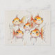 Un délicat tableau aquarelle représentant cinq adorables poissons rouges aux yeux ronds et expressifs et aux teintes orangées douces. Leurs nageoires fluides créent un sens du mouvement, tandis que des gouttes subtiles d'aquarelle ajoutent un effet onirique et surréaliste. L’arrière - plan reste léger et aéré, ce qui renforce le charme fantaisiste et éthérée du tableau. Cette oeuvre capture magnifiquement un mélange d'imaginaire et de nature, ce qui en fait une pièce captivante et réconfortante