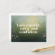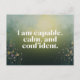 Empower your day with clarity and confidence. This beautifully designed postcard features a serene gradient of green and yellow, evoking the calm of a misty morning or peaceful meadow. Scattered wildflowers bloom across the bottom, framing the uplifting affirmation: “I am capable, calm, and confident.”