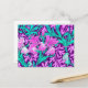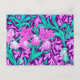 Carte postale dans un William Morris, Art Nouveau, impression textile d'iris et de feuilles, numériquement rehaussée et colorée, dans une orchidée douce et turquoise, sur un améthyste profond violet arrière - plan