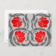 Carte postale dans un vintage William Morris motif textile de fleurs et de feuilles stylisés en pimpernel - fleurs dans un dégradé foncé à rouge vif, avec graphite gris / feuilles gris, sur un arrière - plan gris argenté clair