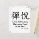 Kanji pour la joie zen avec le proverbe bouddhiste zen, "Vis tous les jours comme si tes cheveux étaient en feu".