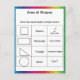 Une carte postale mathématique amusante qui peut être utilisée pour une référence rapide qui a des formules de zone pour carrés, cercles, rectangles et triangles contre un arrière - plan arc-en-ciel!