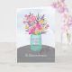 Souvenez-vous de quelqu'un de spécial et souhaitez-lui des bénédictions pour son anniversaire. Ce joli vase en pot Mason contient un bouquet mixte de fleurs à l'aspect aquarelle sur une table rayée. Jolie carte religieuse pour souhaiter un joyeux anniversaire.