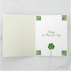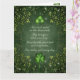 Cette carte de la Saint Patrick présente des shamrocks verts sur un arrière - plan orné de lierre vert et d'or. Irlandais Dit... "Pour chaque pétale sur le shamrock, Ceci apporte un voeu à votre chemin... Bonne santé, bonne chance et bonheur, Aujourd'hui et tous les jours."