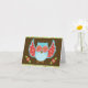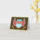 Adorable hibou en bleu, rose et rouge - customisez cette carte avec votre propre salut intérieur!