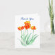 Un joli carte pour notes "Merci" fleuri avec un bouquet de tulipes orange et jaune, d'un tableau original couleur eau de Judy Adamson.
