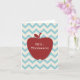 Un carte pour notes pour enseignants avec l'illustration d'une pomme rouge sur un arrière - plan de chevron aqua. Personnalisez avec votre nom sur le devant. À l'intérieur.