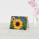 Éclairez la journée de quelqu'un avec une note manuscrite ! Cette charmante carte fleurie présente un champ de tournesols jaunes éclatants surligné d'un joli arrière - plan bleu ciel. L'intérieur est vide pour votre message.