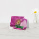 Verre de mer placé sur un carte pour notes rose de plage