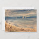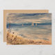 Scène océanique avec voiliers au loin et sandpipers sur la plage. La peinture impressionniste donne une sensation apaisante et apaisante sur la côte. Décor de plage, souvenirs de vacances d'été.