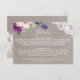 Ce pourpre fleurit et la carte d'insertion de détails de mariage de dentelle est parfaite pour un mariage campagnard. Les caractéristiques de conception chics rustiques une belle disposition de pourpre de prune, lilas et rougissent les fleurs roses avec la dentelle florale blanche sur un arrière - plan de toile élégant.