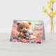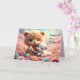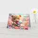 Carte de premier anniversaire avec un ours en jouet sucré et bébé, fleurs et papillons. AI générée par moi-même.