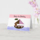 Premier anniversaire de bébé ! Un voilier sur l'eau avec un petit ours qui monte dessus. Une bordure rose avec des pois blancs le long du sommet.