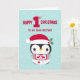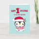 Envoyez vos voeux de Noël à votre cher frère avec cette carte d'un adorable petit pingouin portant un Père Noël avec un bib et des couches pour son premier Noël. © Ness Nordberg