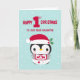 Carte Premier Noël de notre fille avec un bébé pingouin