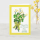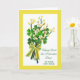 Joyeuse première Saint Patrick ! Dans votre nouvelle maison, carte de voeux papier. Envoyez de la chance irlandaise et les meilleurs voeux pour les vacances avec ce design gai et lumineux. Image d'un bouquet de shamrock, de saules de chatte et de branches de printemps. Cadre jaune vif. Copyright © Shoaff Ballanger Studios, 2021.